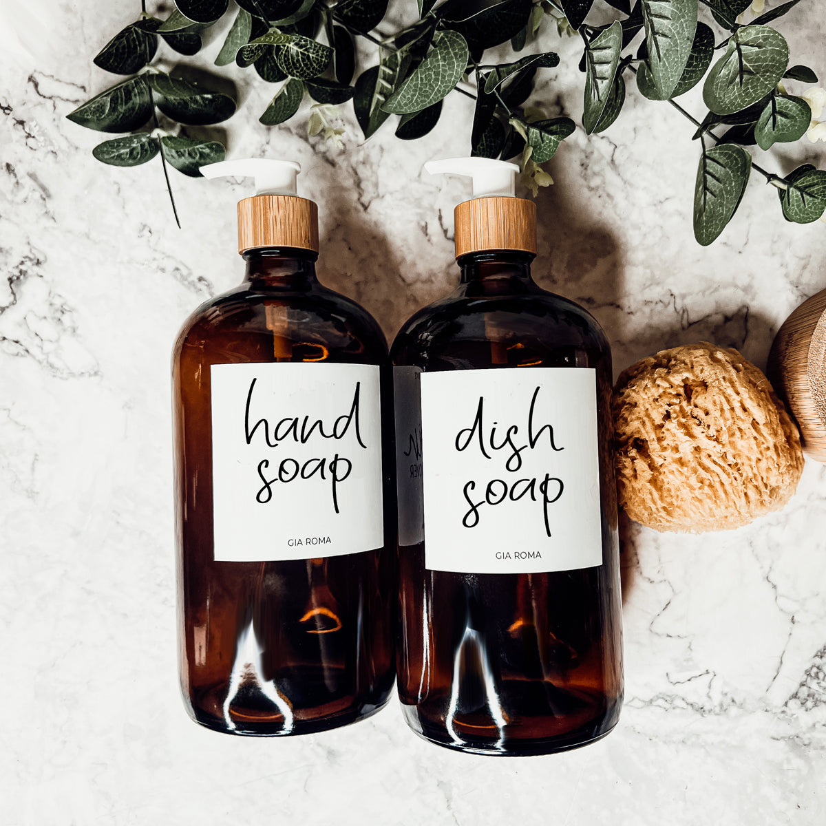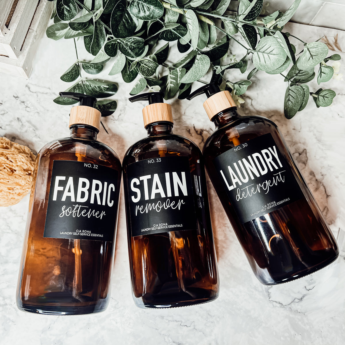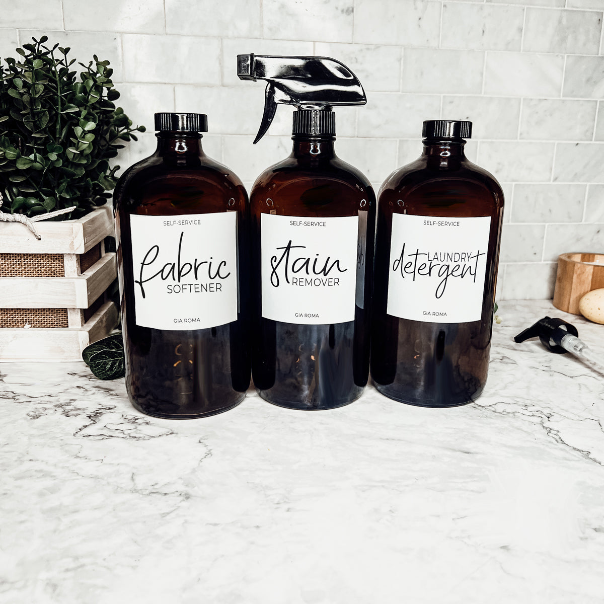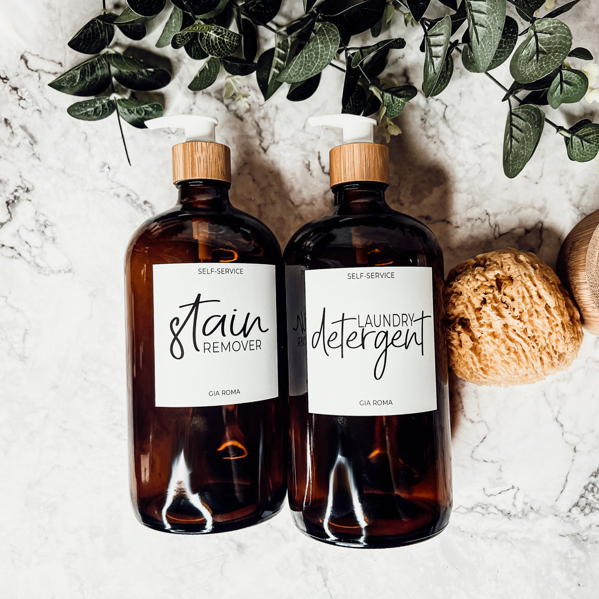 These reusable amber dispenser bottles combine function and farmhouse‑friendly style — durable glass that looks clean on display and performs behind the scenes. They’re ideal for DIY soap, mouthwash, hand wash, bulk shampoo, or concentrated laundry formulas. Labels (black or white waterproof) let you customize and keep things tidy at a glance.