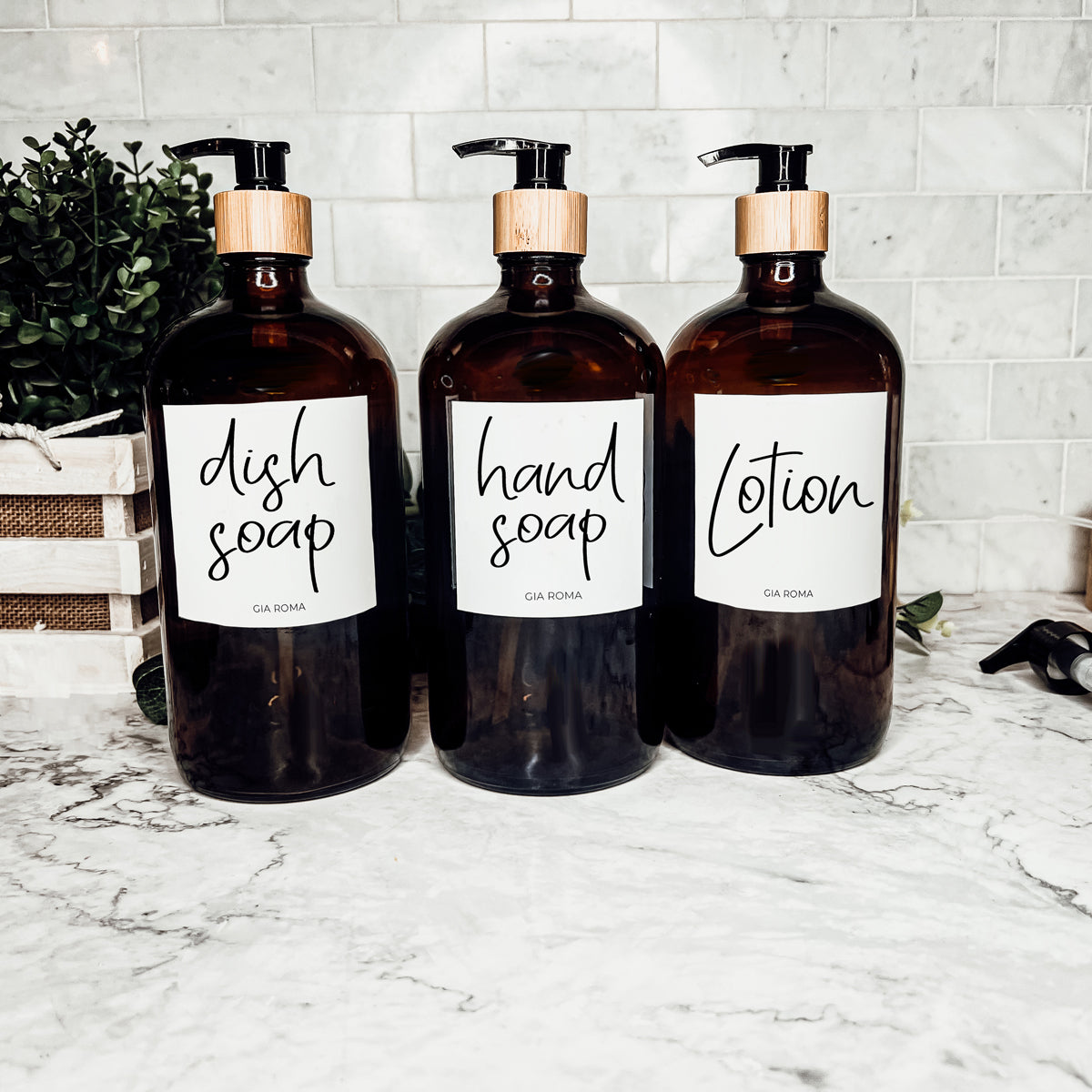 A roomy 32 oz amber glass dispenser that keeps your liquid soap, laundry detergent, mouthwash or bulk cleaners organized and refillable — stylish, sturdy, and built for everyday use. The amber glass helps protect light‑sensitive contents while the included pump makes refilling simple and mess‑free.