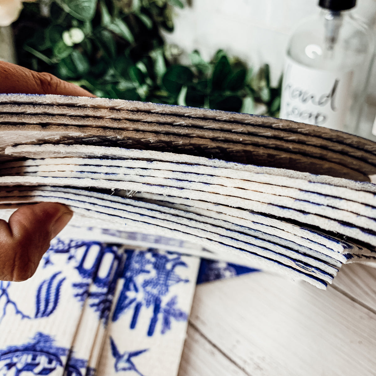 These Chinoiserie Eco Kitchen Cloths are stylish, ultra-absorbent dish cloths made from 70% cellulose (wood pulp) and 30% cotton — a perfect, reusable alternative to sponges and paper towels. They clean dishes, countertops, stovetops, mirrors, and more while cutting waste and adding a touch of classic pattern to your kitchen.