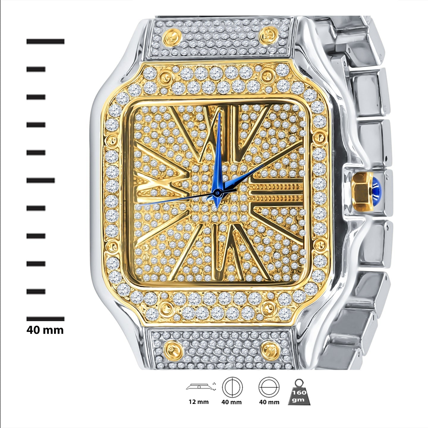 All-over crystal pavé finish — eye-catching sparkle across the dial, bezel and bracelet for a true iced watch aesthetic and high-impact style.