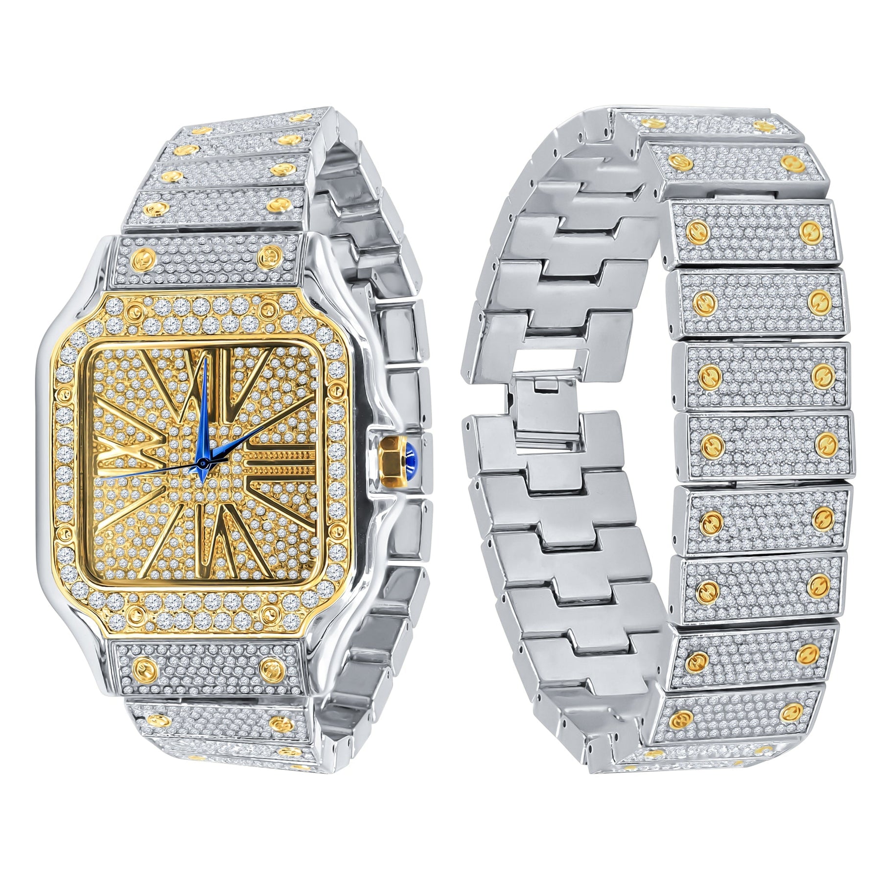 This stainless steel crystal watch set gives the luxe, iced-out look without overcomplicating your wardrobe — wear it solo to elevate casual outfits or as a finishing touch for evening wear. From the pavé stones to the two-tone accents and matching bracelet, it’s designed to make an impact while staying comfortable for daily use. Order now from BandsCo Straps and enjoy fast USA shipping.