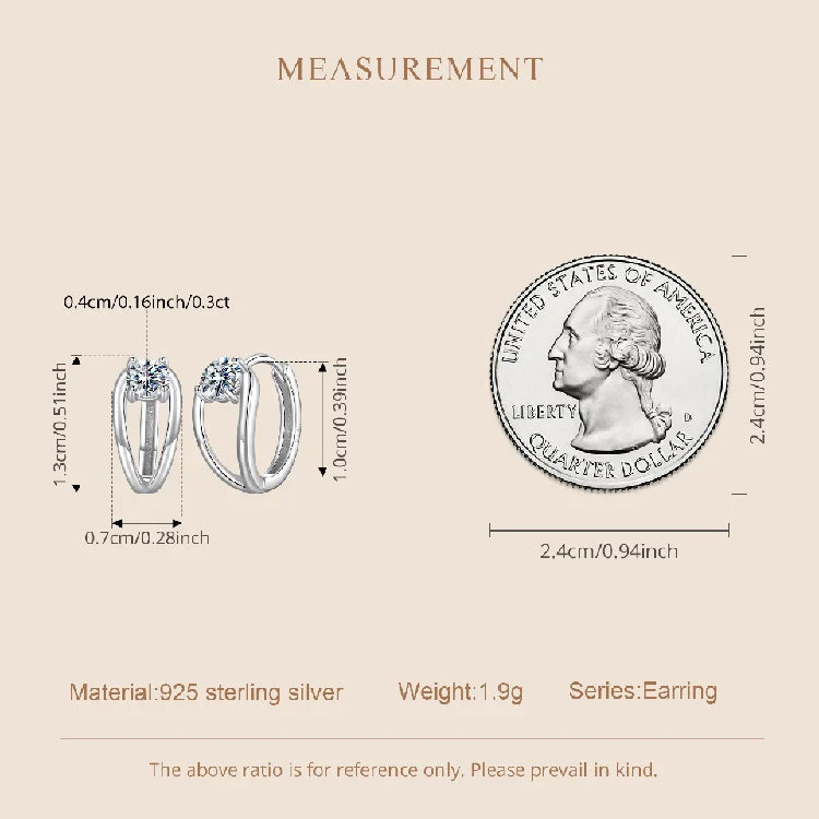 Delicate double-layer huggie hoops with brilliant moissanite sparkle—designed for everyday comfort and evening polish. These lightweight sterling silver huggies sit close to the ear for a modern, refined look that layers easily with other studs or hoops.