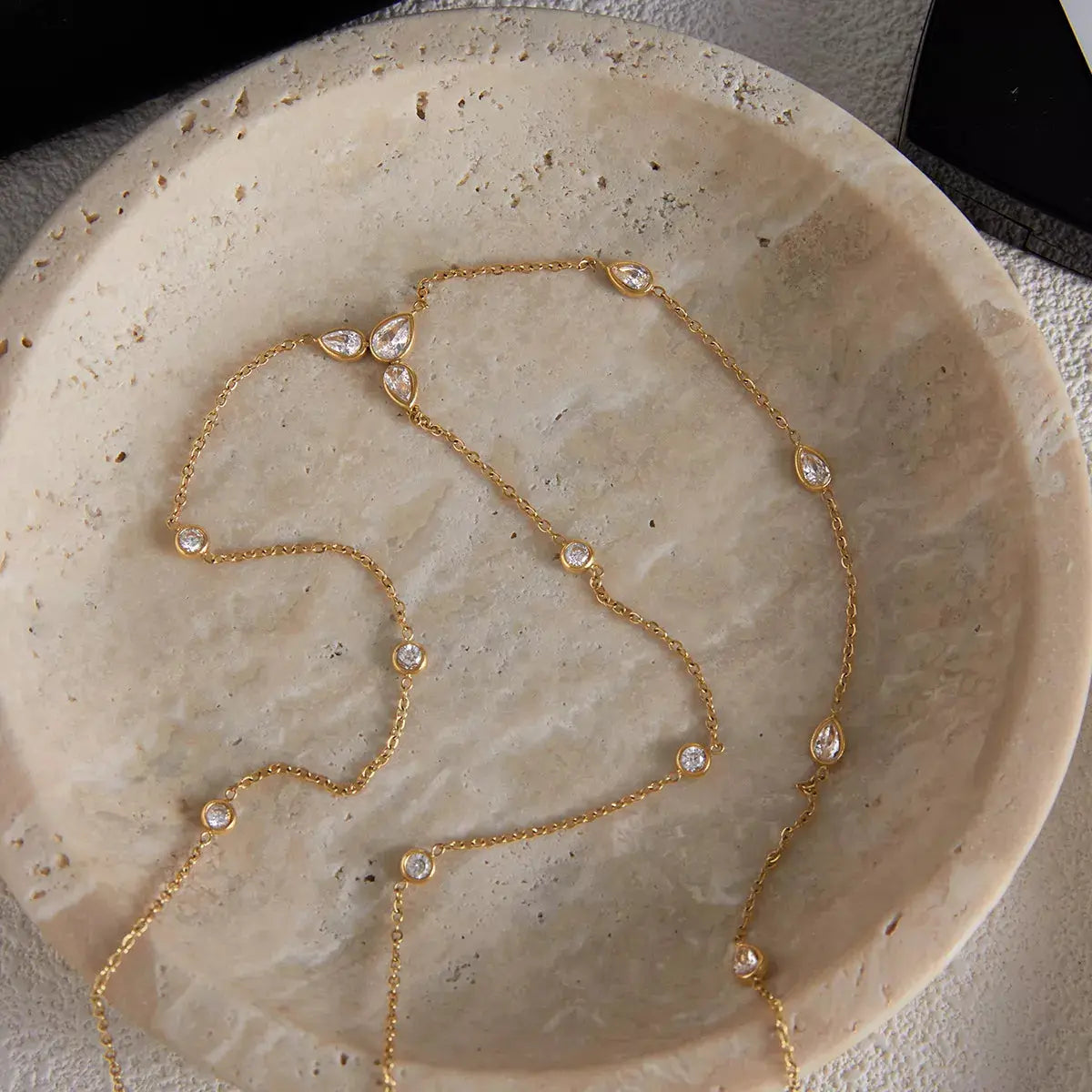 Each 18K Gold-Plated Zircon Chain Necklace showcases expert craftsmanship, drawing on a heritage of meticulous design and artistry. Every facet, from its premium finish to the secure stainless steel base, is testament to precision and dedication—ensuring a piece that looks breathtaking and endures beautifully.