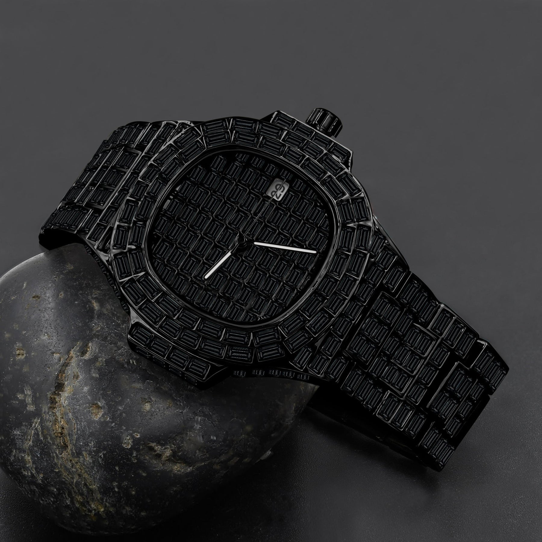 This iced out watch blends streetwear attitude with everyday comfort — think bold, reflective baguette CZ accents on a sleek 30mm profile that layers well with bracelets or stands alone as a statement. If you want instant shine, unmistakable style, and fast USA shipping from BandsCo Straps, this hip hop bling watch delivers.
