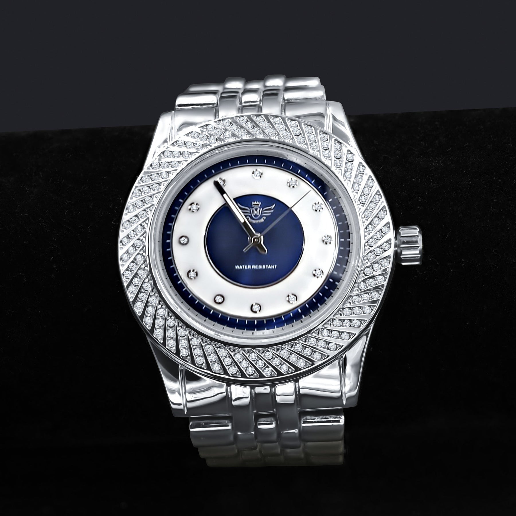 This bling watch balances bold aesthetics with real-world wearability — it’s flashy without being fussy. The multi-link silver bracelet sits comfortably on the wrist and the CZ-encrusted bezel catches light for maximum impact. Whether you’re layering with chains or wearing it solo, it elevates your look in an instant.