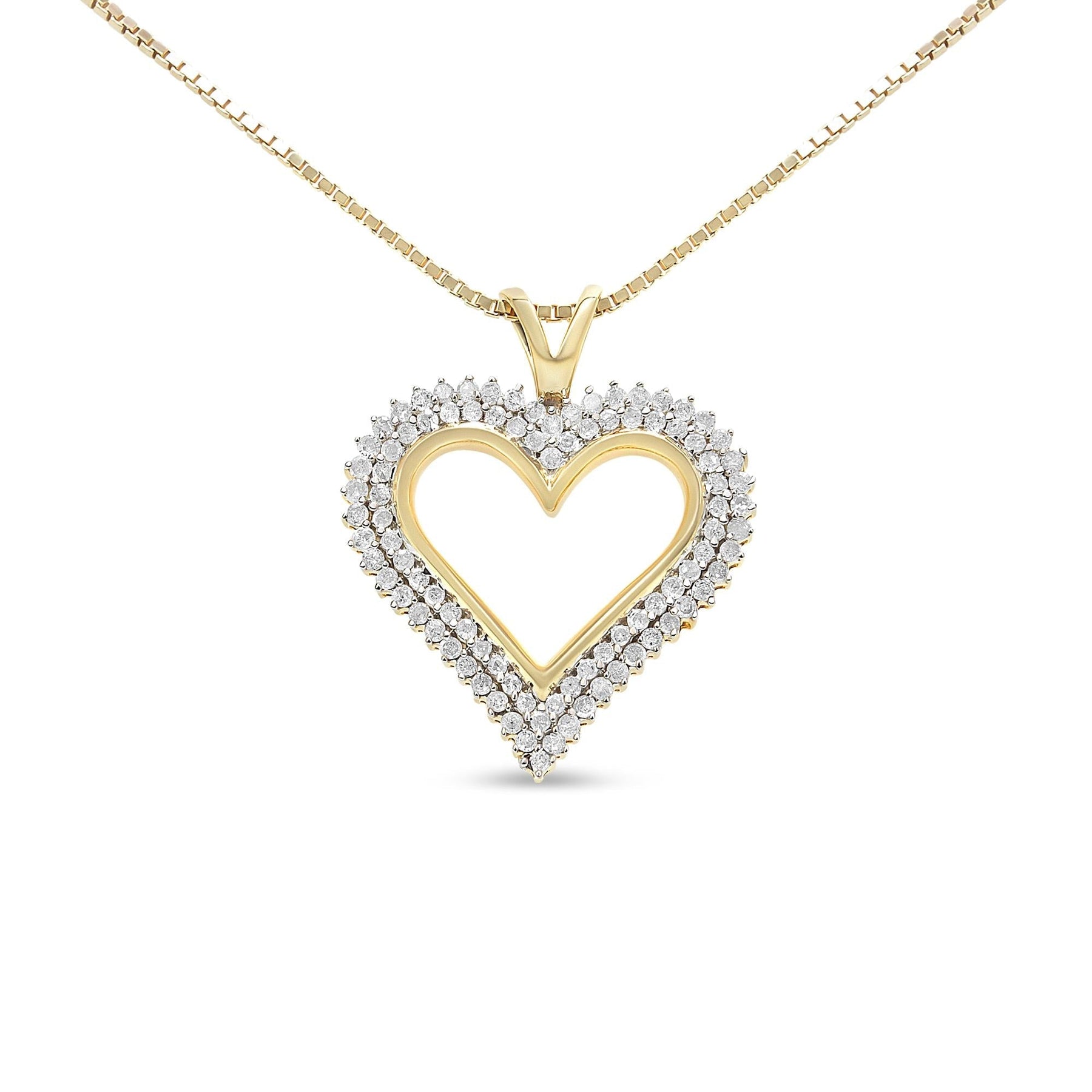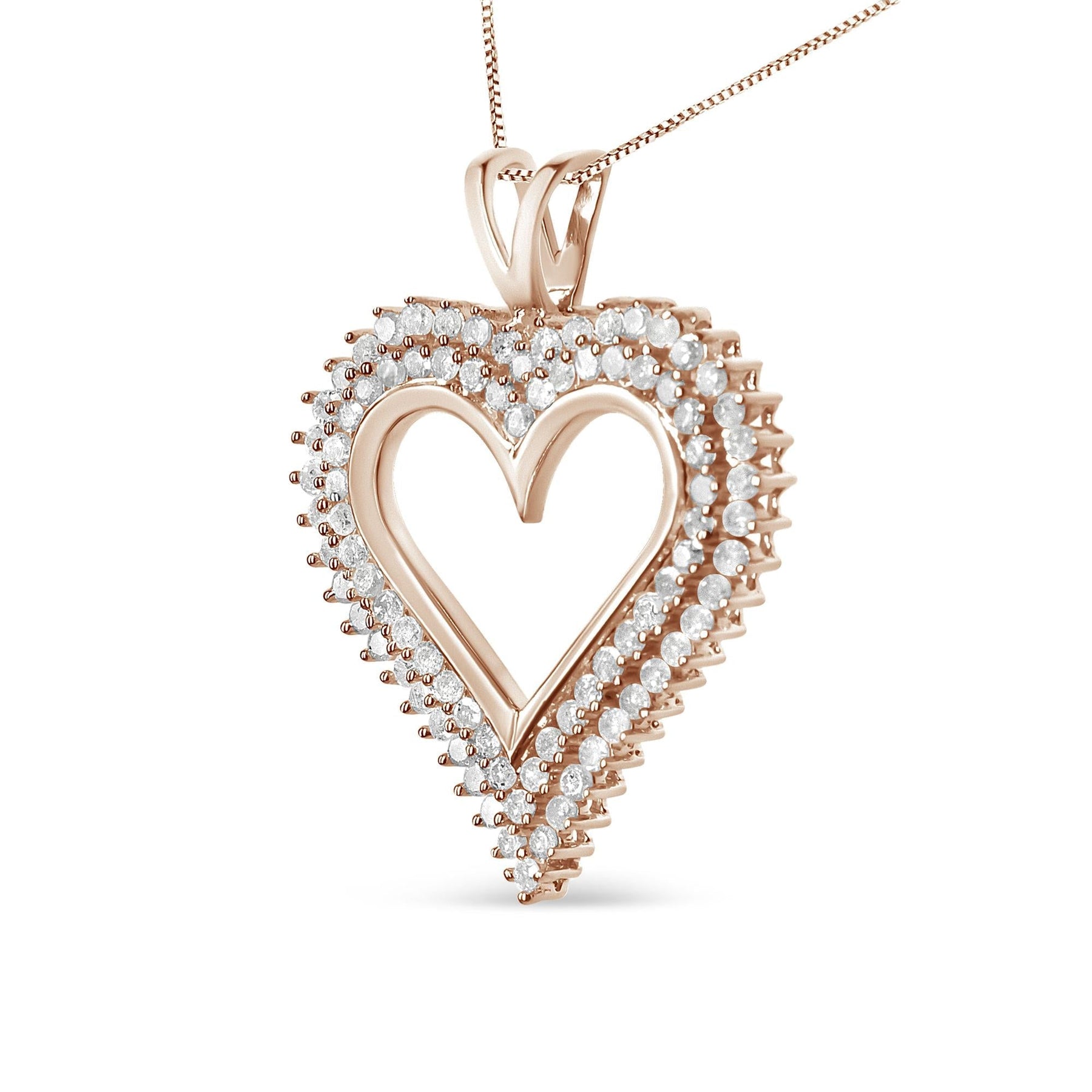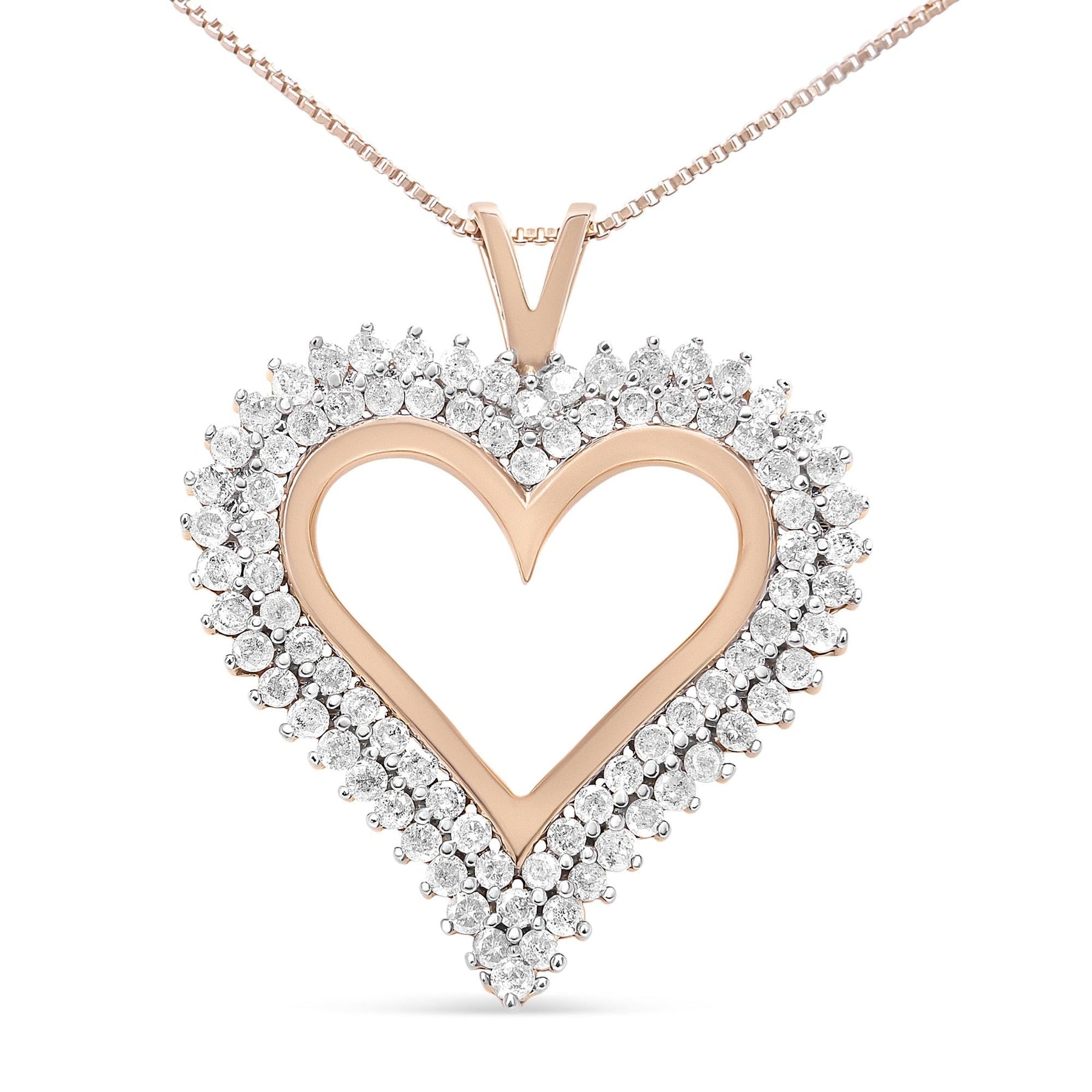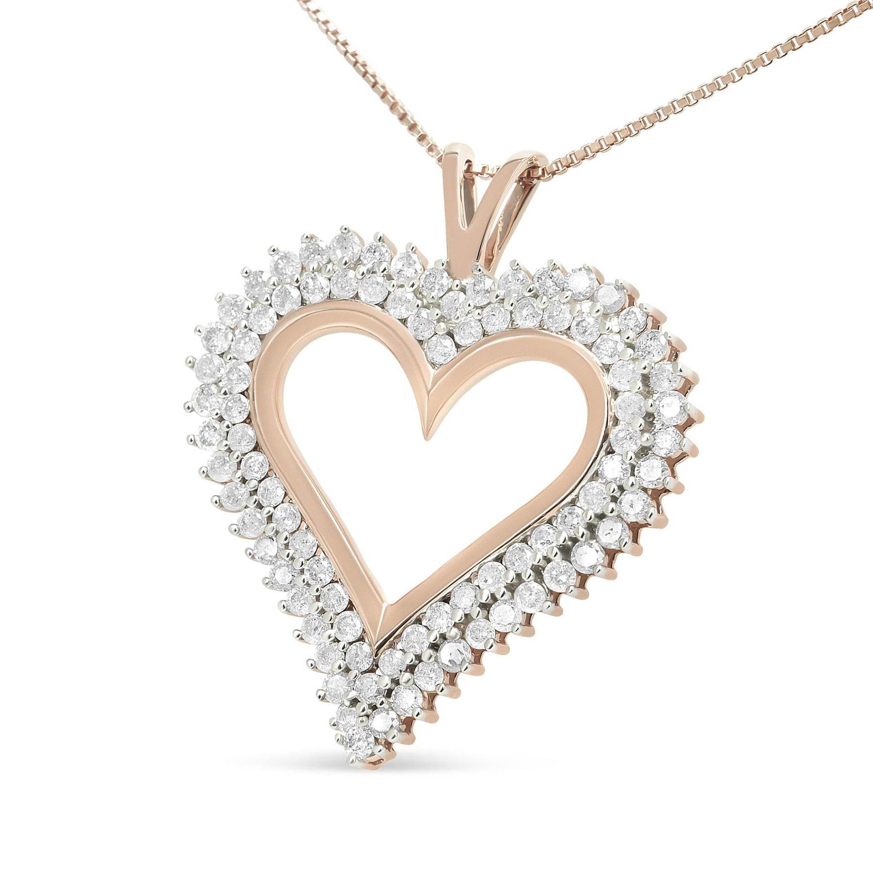 Celebrate someone you love with this stunning diamond heart pendant. This diamond necklace features 2 rows of round diamonds prong set along the edge of this open heart shape crafted of stunning .925 sterling silver, with a matching box chain necklace with a spring ring clasp. The contemporary yet classic 18" box chain complements any neckline beautifully. This authentic design is crafted of real 92.5% sterling silver that has been electro-coated with genuine rhodium (a platinum-family metal), ensuring it will keep a tarnish-free shine for years to come. Both pretty and personal, this romantic diamond heart pendant necklace is sure to radiate romance. This open heart design features 84 rose-cut, promo quality diamonds. This sweet necklace makes a perfect Valentine's Day gift, or as a way to remember someone close to your heart. It's a classic and feminine piece she'll want to show off every day.