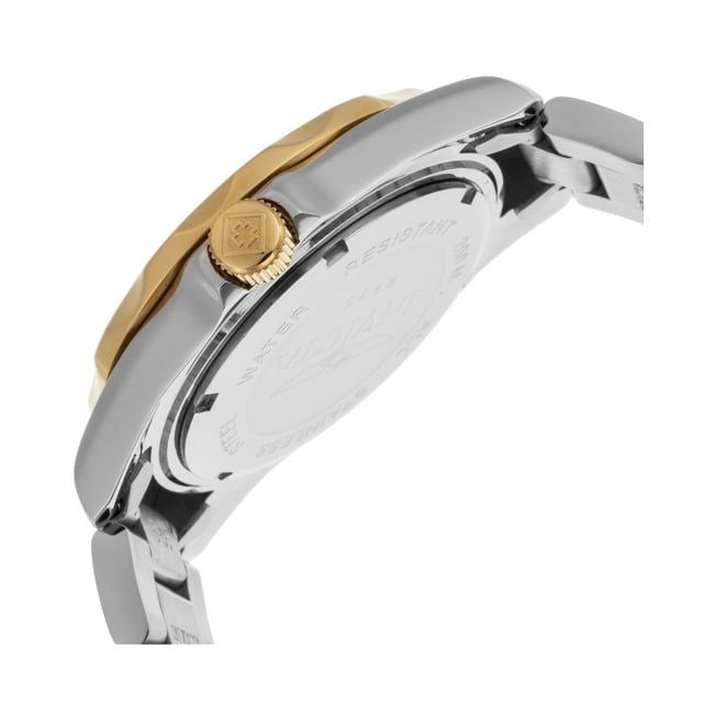Blue dial enhanced by luminous yellow gold-tone hands. Silver-tone stainless steel case with a two-tone (silver-tone and 18kt yellow gold-plated) stainless steel band. Quartz movement. 200 meters / 660 feet water resistance. Uni-directional Rotating bezel. Scratch Resistant Mineral crystal. Solid caseback. Fold Over clasp. Pull / Push crown. Case size 37.5 mm x 11 mm. Band 18 mm x 8.25 incheslong. Invicta 8935 Pro Diver Watch. Watches Hattori Caliber PC32A Pro Diver Unisex, Adult