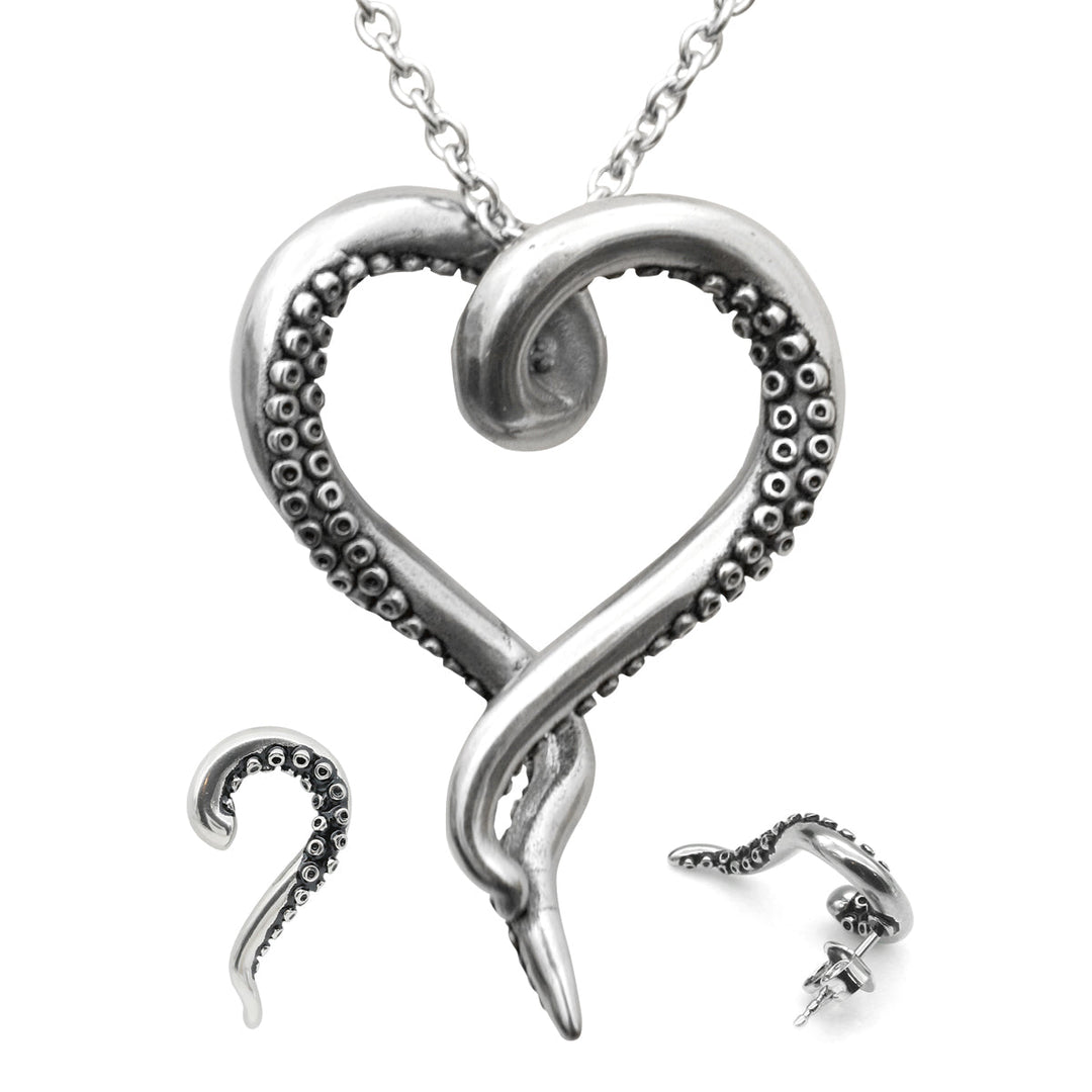 Octopus Tentacle Necklace And Earring Set Silver Pendant