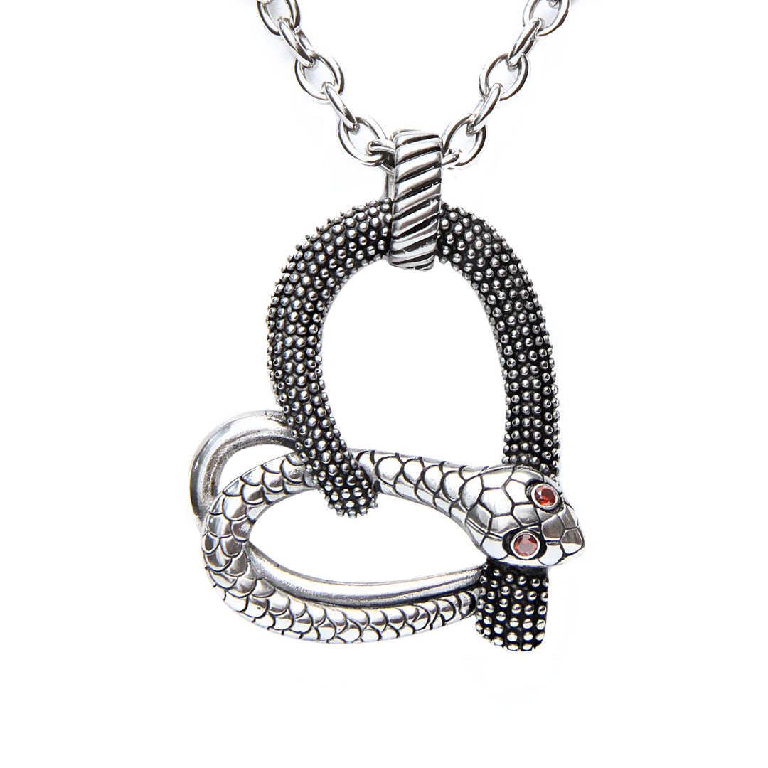 Snake Heart Pendant Necklace Gothic Silver Tone Adjustable