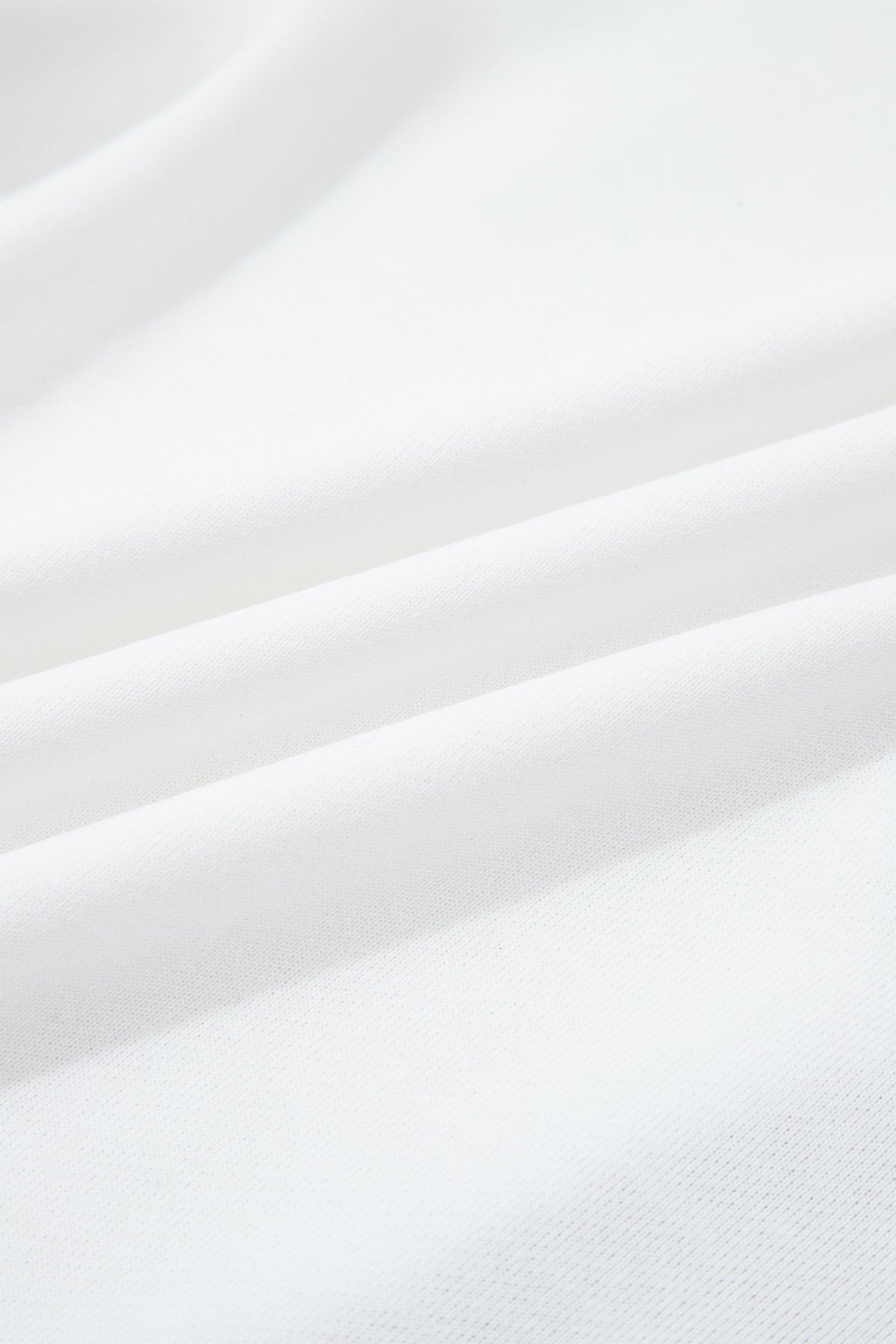 Stay warm and fashionable at the game in our sweatshirt. The striking chenille graphic and striped neckline and sleeves give it a trendy varsity look. Perfectly paired with denim shorts, jeans, or sweatpants for a casual yet stylish outfit. Polyester/Cotton