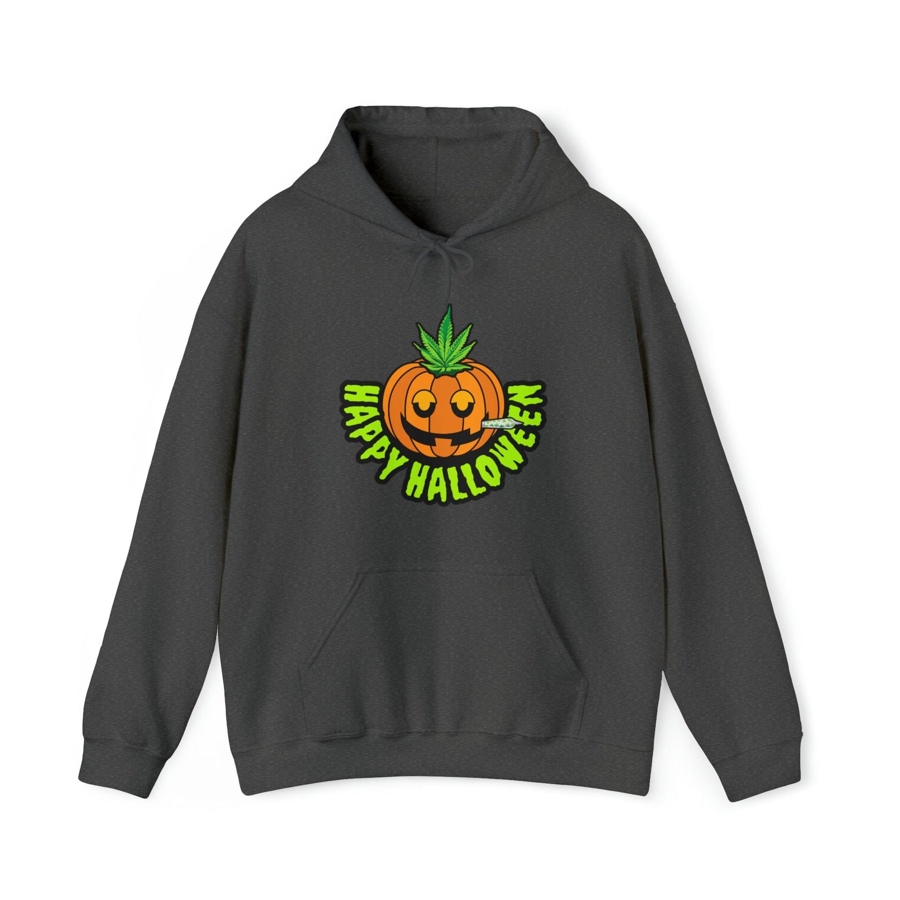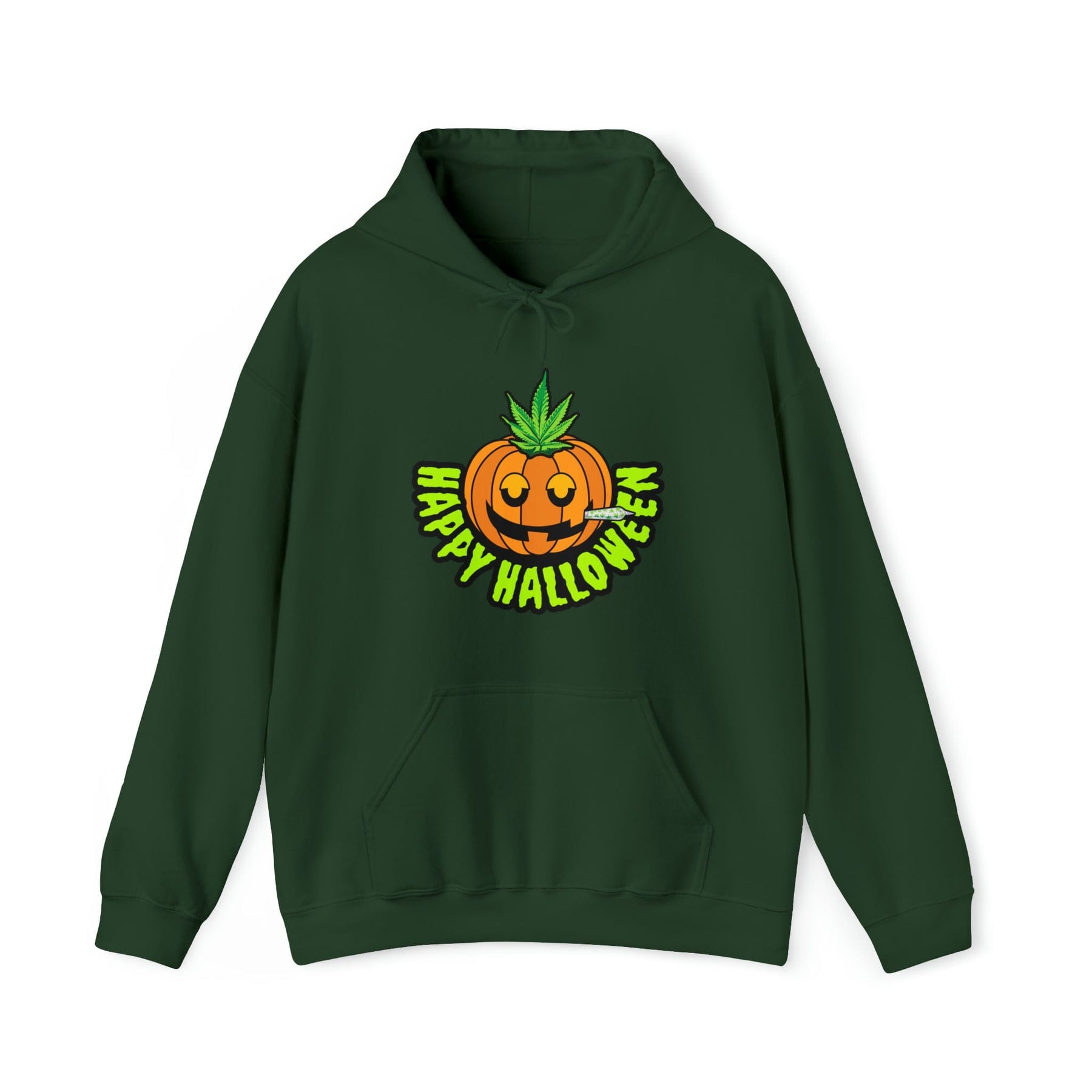 Celebrate the haunted season in style with our Happy Halloween Stoner Pumpkin Cannabis Hoodie.