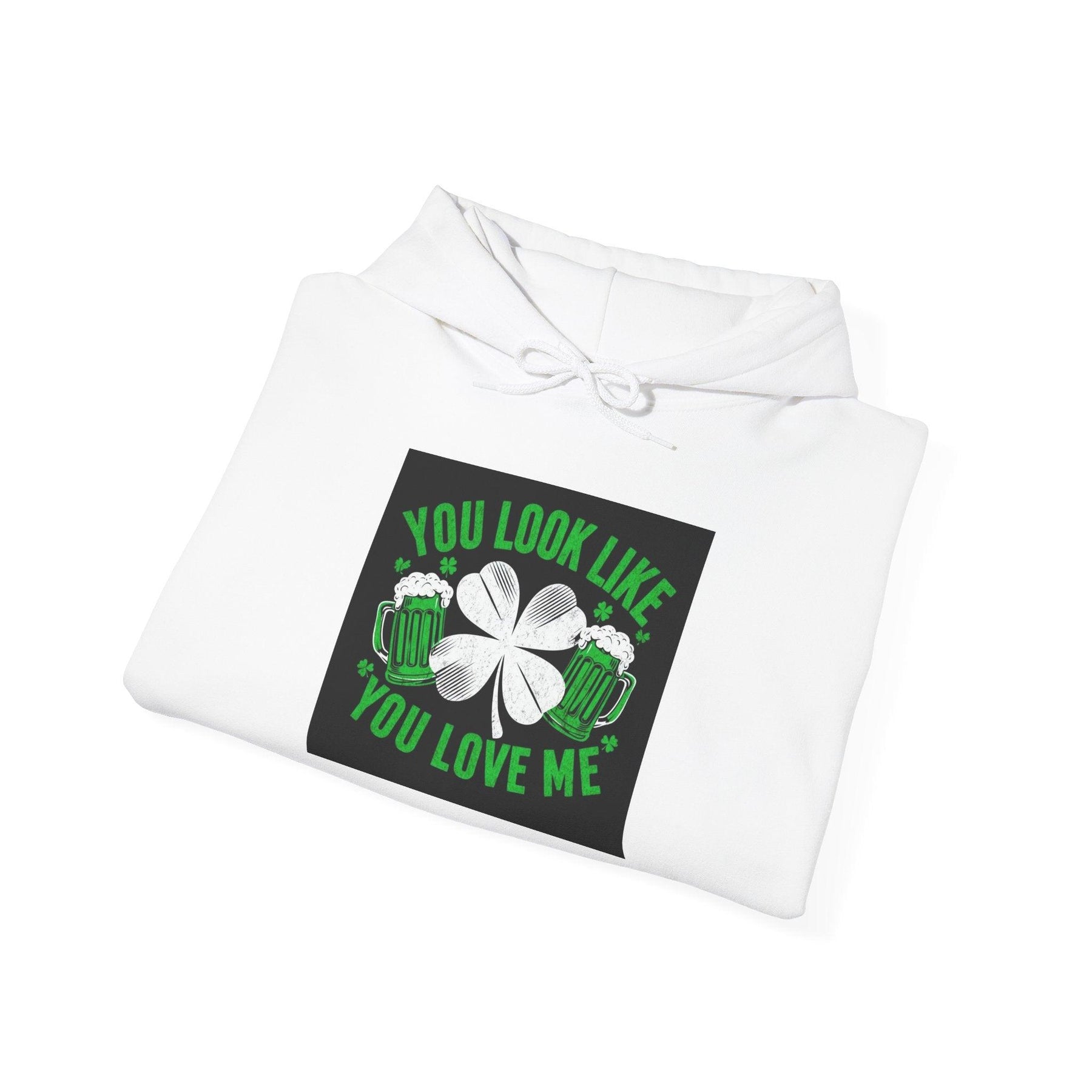Get ready to turn heads and spread the Irish cheer at the St. Patrick's Day parade with this playful and cozy hooded sweatshirt! Whether you're celebrating with friends, catching beads, or enjoying a pint, this hoodie is the perfect blend of style and comfort. This unisex heavy blend hooded sweatshirt is relaxation itself. Made with a thick blend of cotton and polyester, it feels plush, soft and warm, a perfect choice for any cold day. In the front, the spacious kangaroo pocket adds daily practicality while the hood's drawstring is the same color as the base sweater for extra style points. .: The classic fit along with the pouch pocket and the tear-away label make for a highly comfortable, scratch-free wearing experience. .: The color-matched drawcord and the double-lined hood add a stylish flair and durability that tie everything together. .: Made using 100% ethically grown US cotton. Gildan is also a proud member of the US Cotton Trust Protocol ensuring ethical and sustainable means of production. The blank tee's dyes are OEKO-TEX-certified dyes with low environmental impact. .: Fabric blends: Heather Sport colors - 60% polyester, 40% cotton Key Features: πŸ€ Bold & Fun Design: The cheeky text, You Look Like You Love Me, is sure to spark smiles and conversations. πŸ€ Available Colors: Choose from festive green, classic black, or crisp white to match your parade-day vibe. πŸ€ All Sizes: From XS to XXL, this hoodie fits everyone looking to stay warm and stylish during the festivities. πŸ€ Soft & Cozy Fabric: Made from a high-quality cotton-polyester blend, this hoodie is as comfy as it is eye-catching. Why You'll Love It: Perfect for layering on chilly March days. Great for photo ops with friends and family. A unique way to show your St. Patrick’s Day spirit. Care Instructions: Machine washable for easy cleaning. Tumble dry low to keep it looking fresh and fabulous. Grab yours today and let the luck of the Irish keep you warm and stylish this St. Patrick's Day!