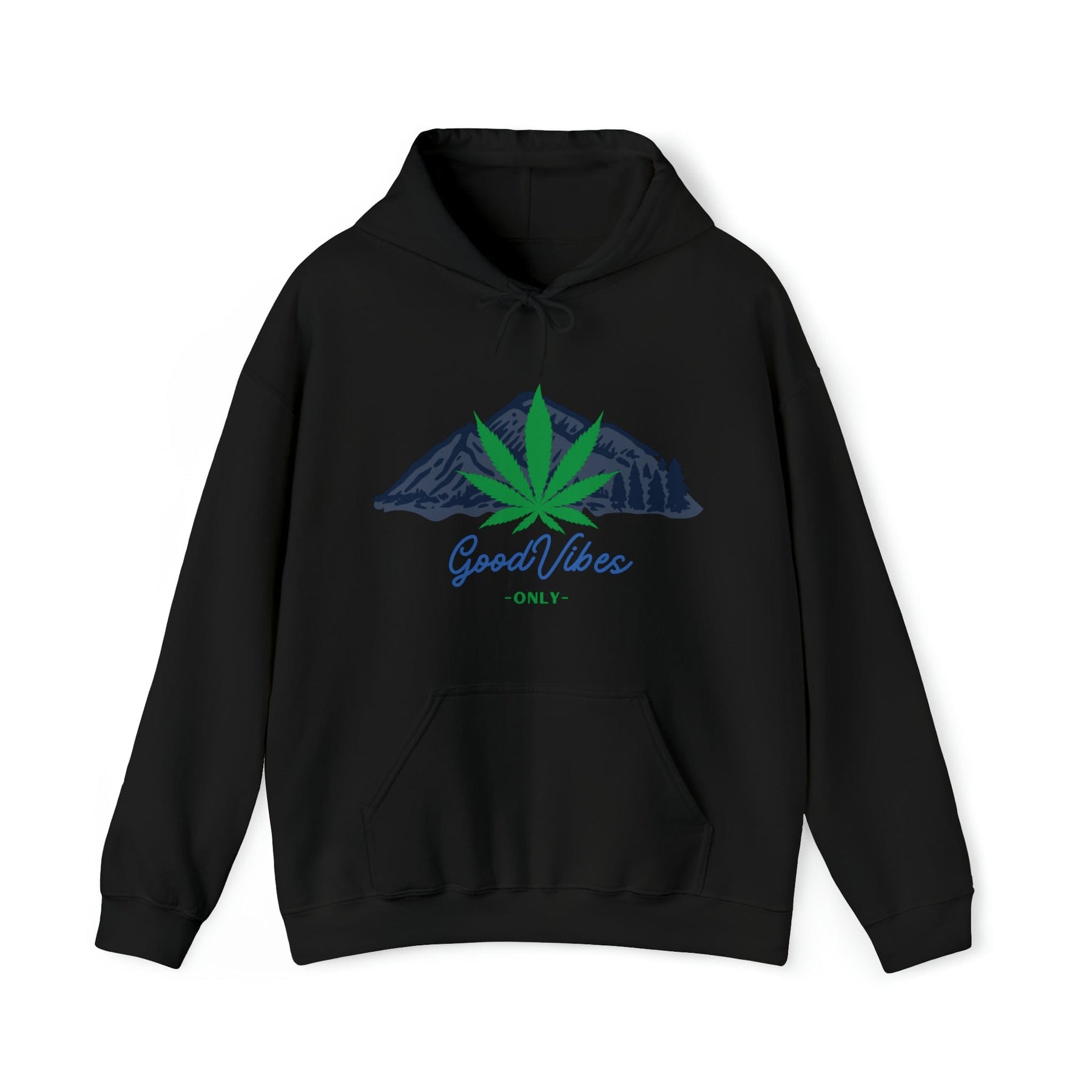 Our Good Vibes Only Mountain Hoodie is all about merging the serenity of nature with the magic of cannabis.
