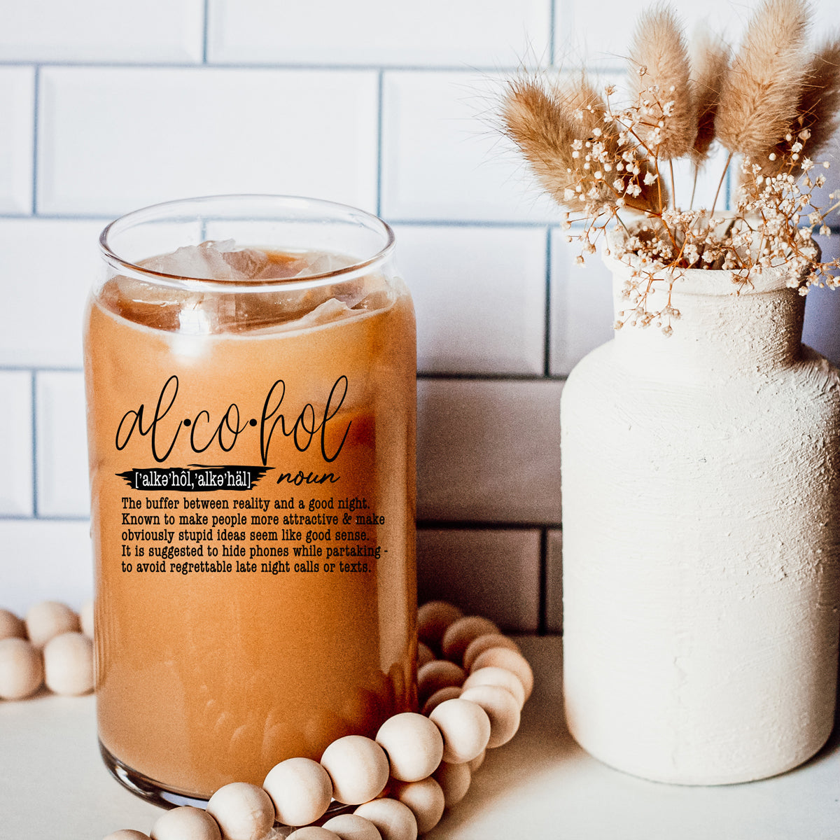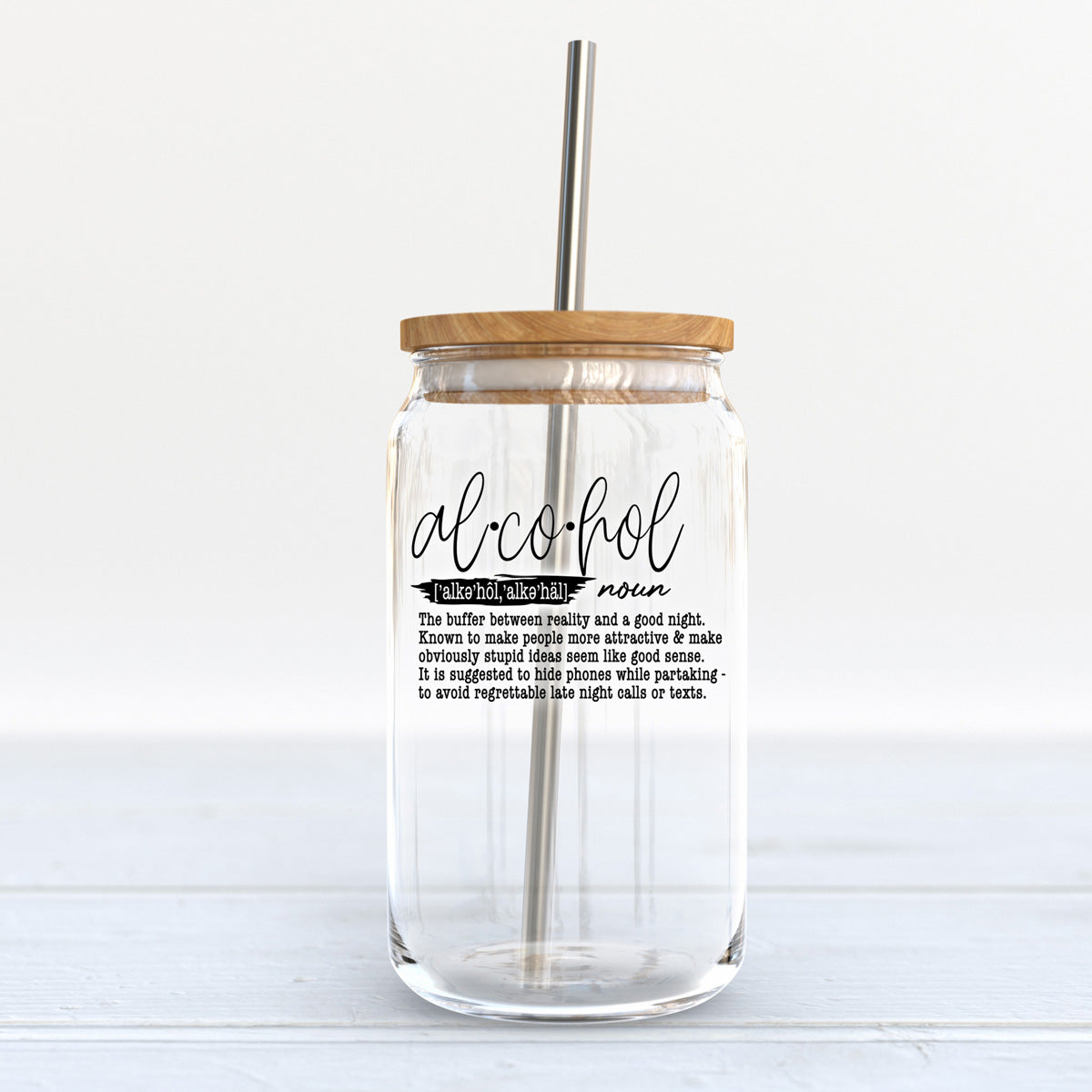 This tumbler blends café style with sustainable function — clear glass showcases your drink, the bamboo lid adds warmth, and the included stainless straws replace disposable plastic. It’s versatile enough for morning coffee, iced tea, beer on the patio, smoothies, or cocktails at a backyard BBQ. The black graphic option works well with light and colorful drinks; darker beverages may hide the printed design.