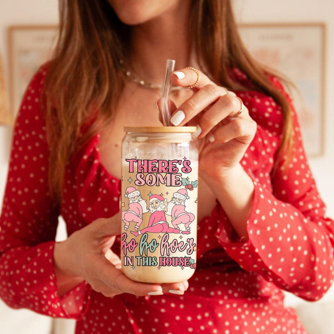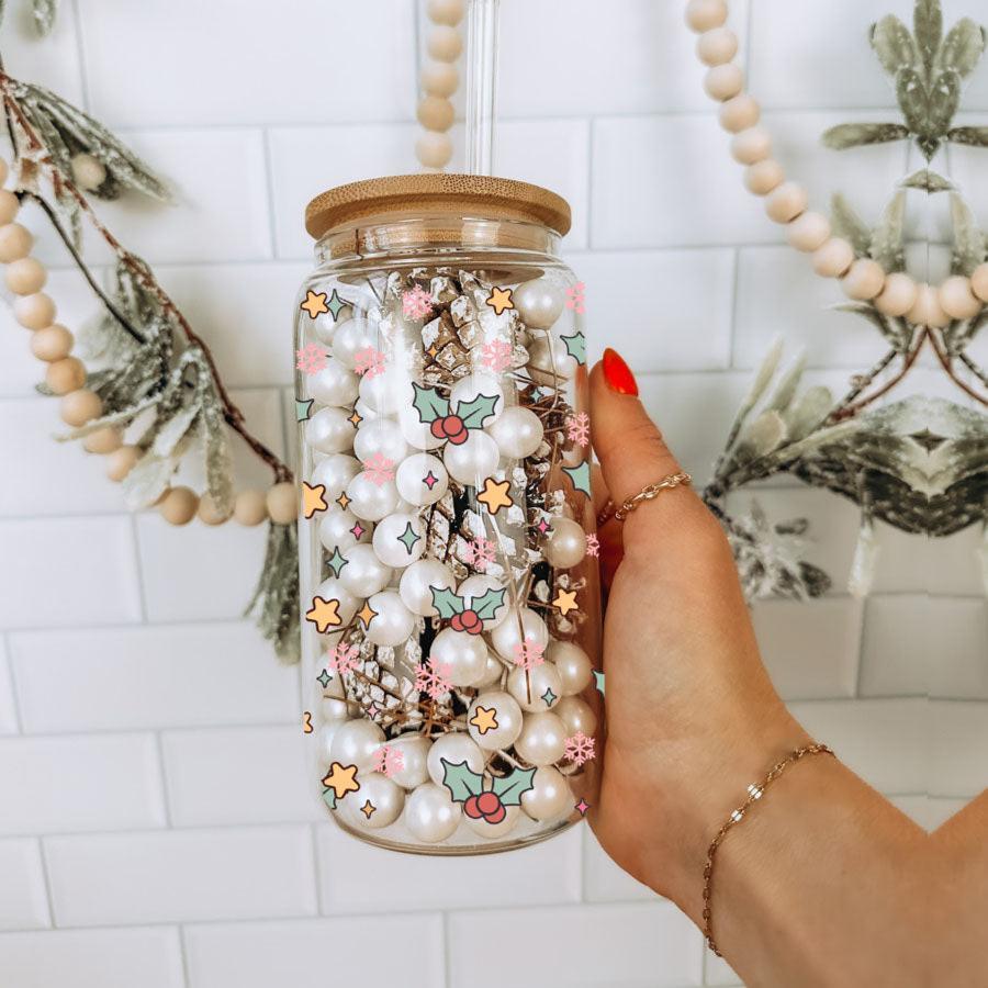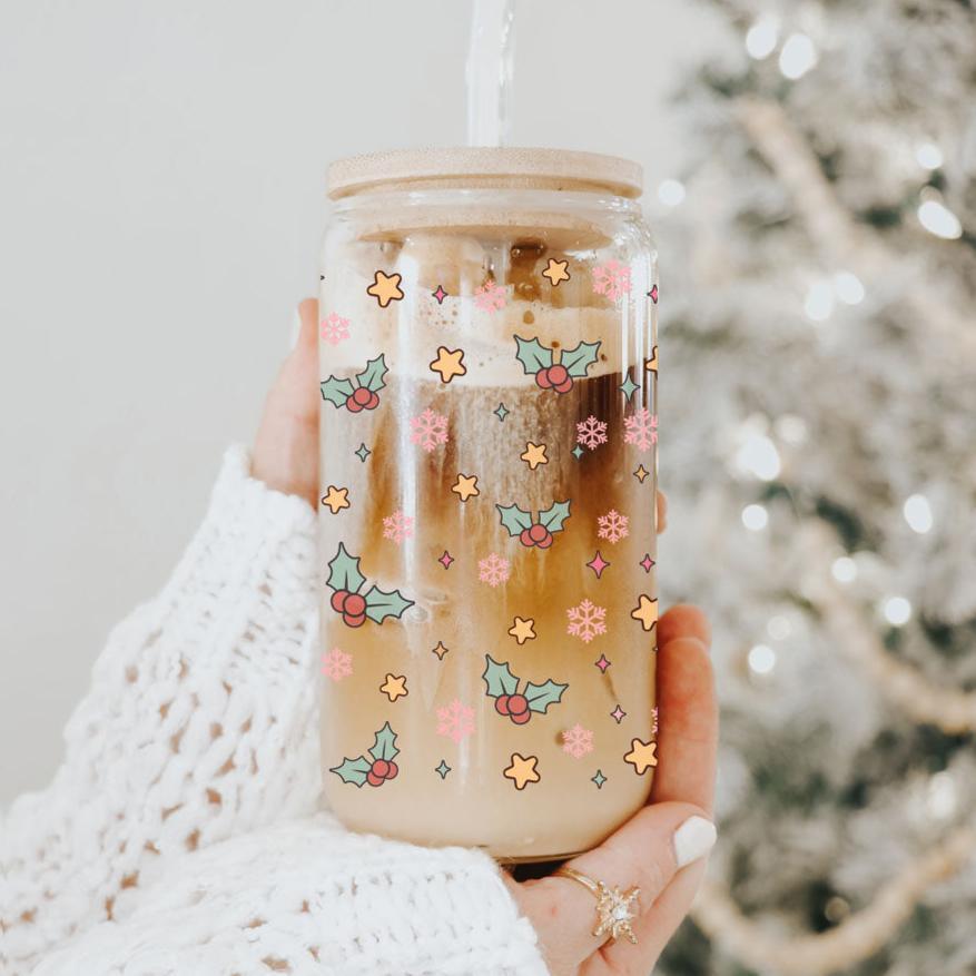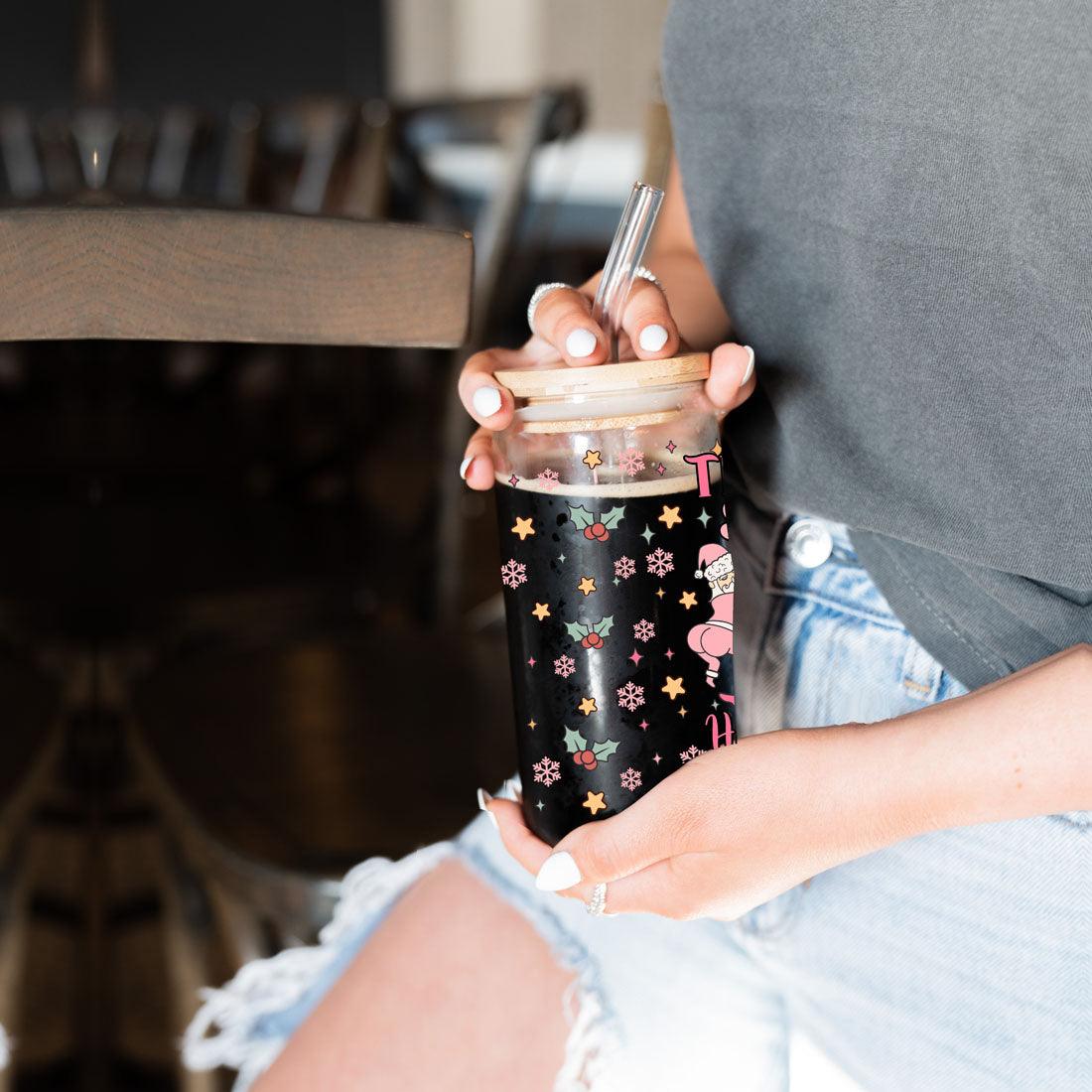 This cup blends holiday humor with practical design: lightweight yet sturdy borosilicate glass, a natural bamboo lid for a stylish touch, and reusable glass straws that feel great while cutting down waste. The full-wrap pastel print makes it a fun stocking stuffer or hostess gift — great for anyone who prefers their holidays on the naughty-but-nice side.