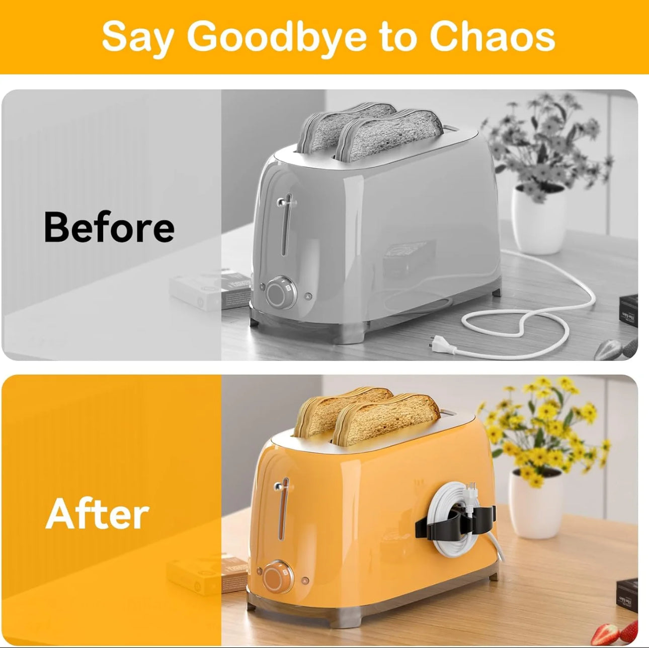 Keep your countertops and workspaces clutter-free with the TidyWrap Cord Organizer. This 6-pack of durable rubber cord holders is designed to manage and hide power cords from your kitchen appliances, office devices, and bathroom tools. Whether you're dealing with a blender, coffee maker, curling iron, or office printer, TidyWrap makes it easy to store cords neatly and securely.