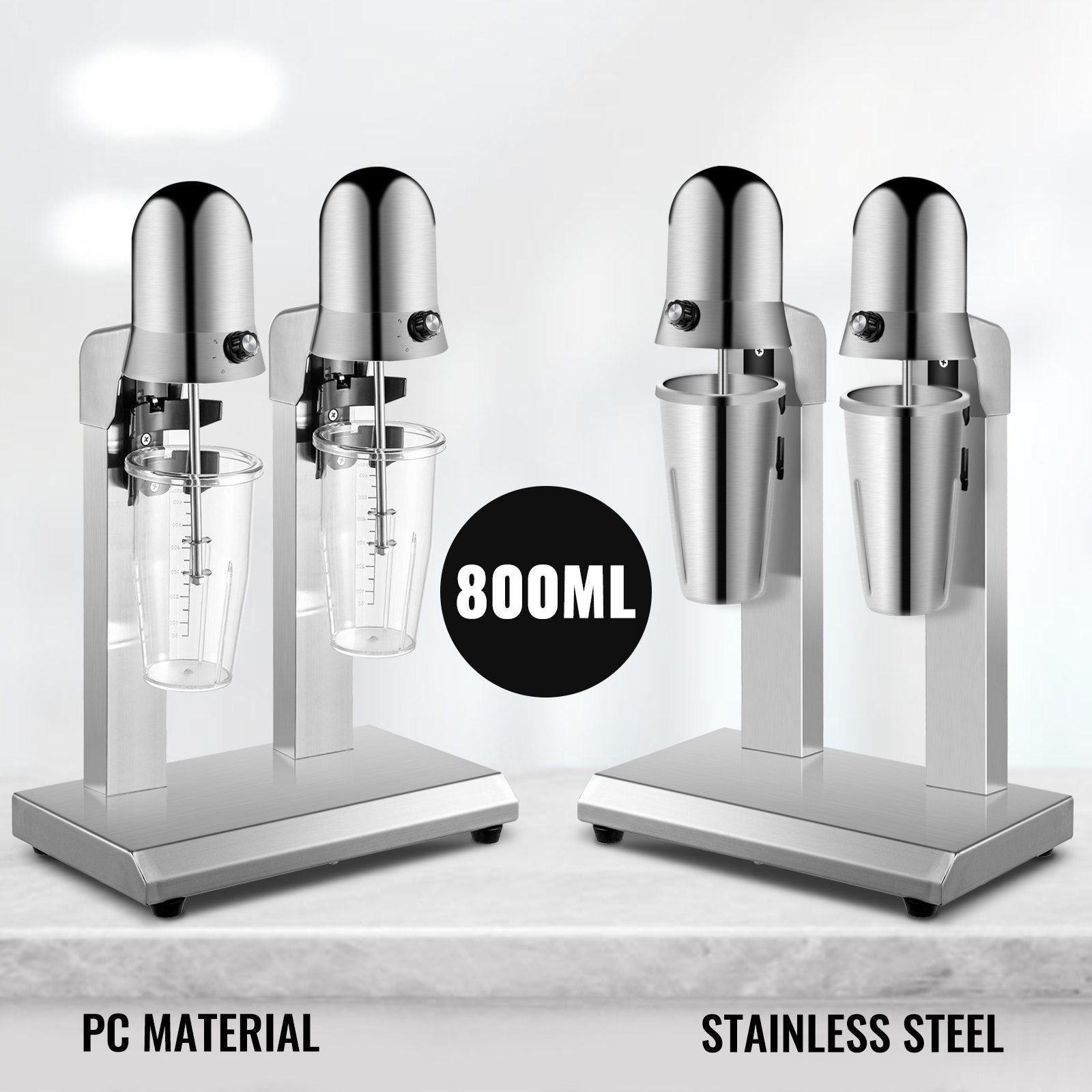 VEVOR Milkshake Maker, Double-Head Milkshake Machine, 560W Milkshake Mixer, Malt Maker with 800ml Cups (Stainless Steel/PC), 2-Speed Electric Milk Shake Machine, 36000RPM Drink Mixer, Stainless Steel