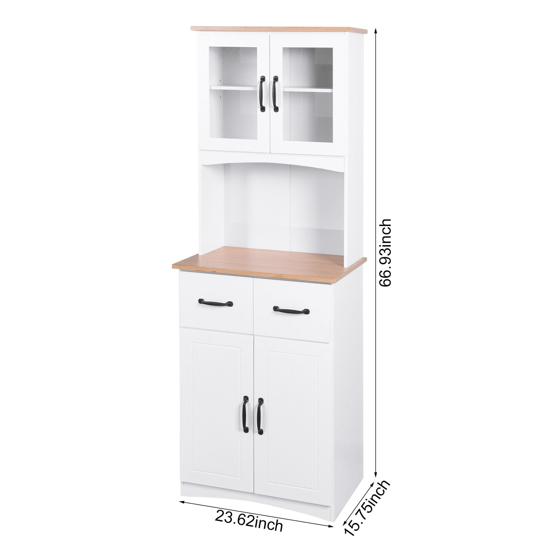 Wooden Kitchen Cabinet White Pantry Room Storage Microwave Cabinet with Framed Glass Doors and Drawer |
