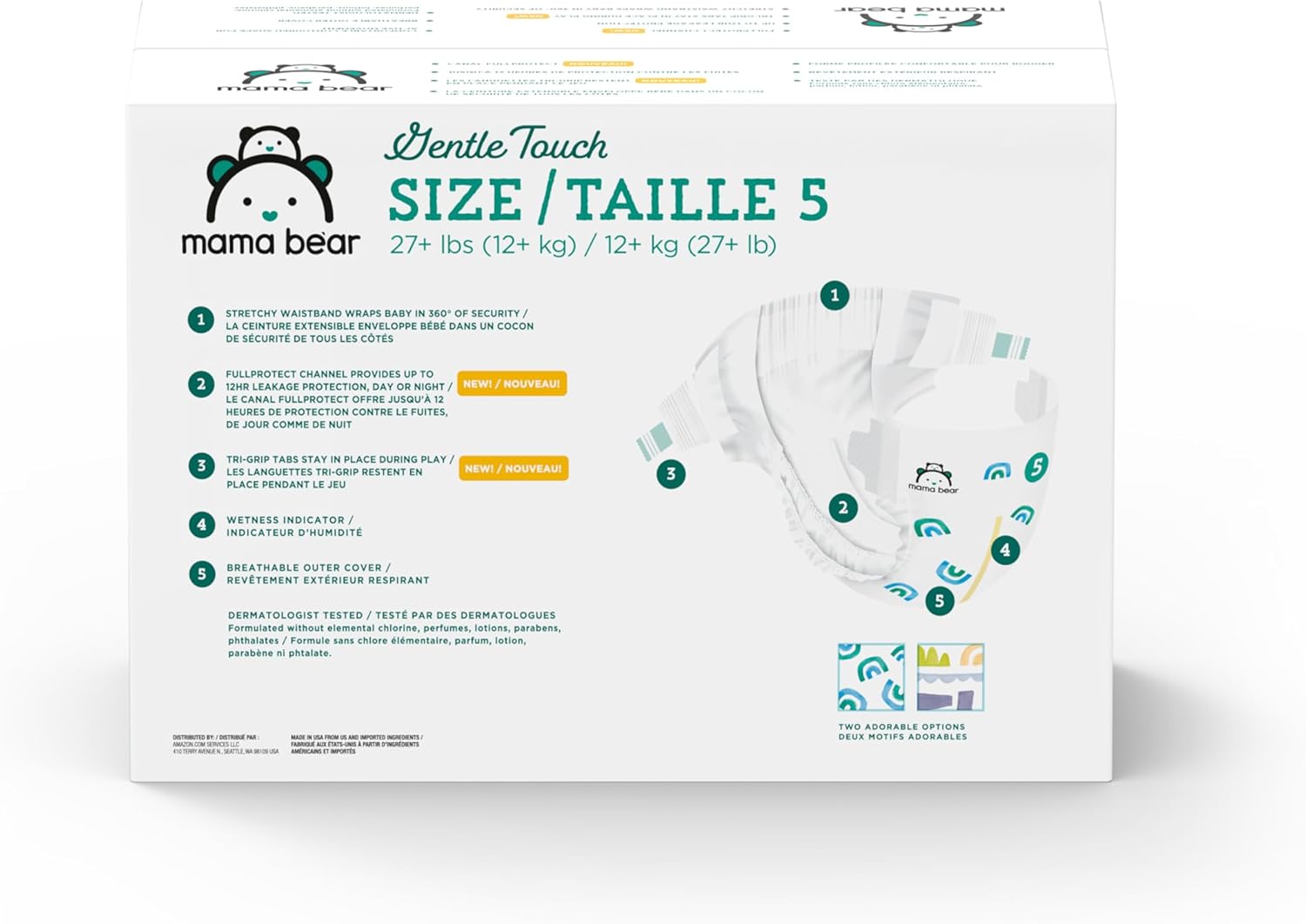 IN THE BOX: Mama Bear Gentle Touch Diapers for babies 27+ pounds; size 5; (4 packs of 33 diapers each, 132 total)