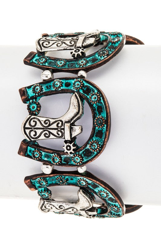 Cowboy Boots Horseshoe Stretch Bracelet Turquoise Accents