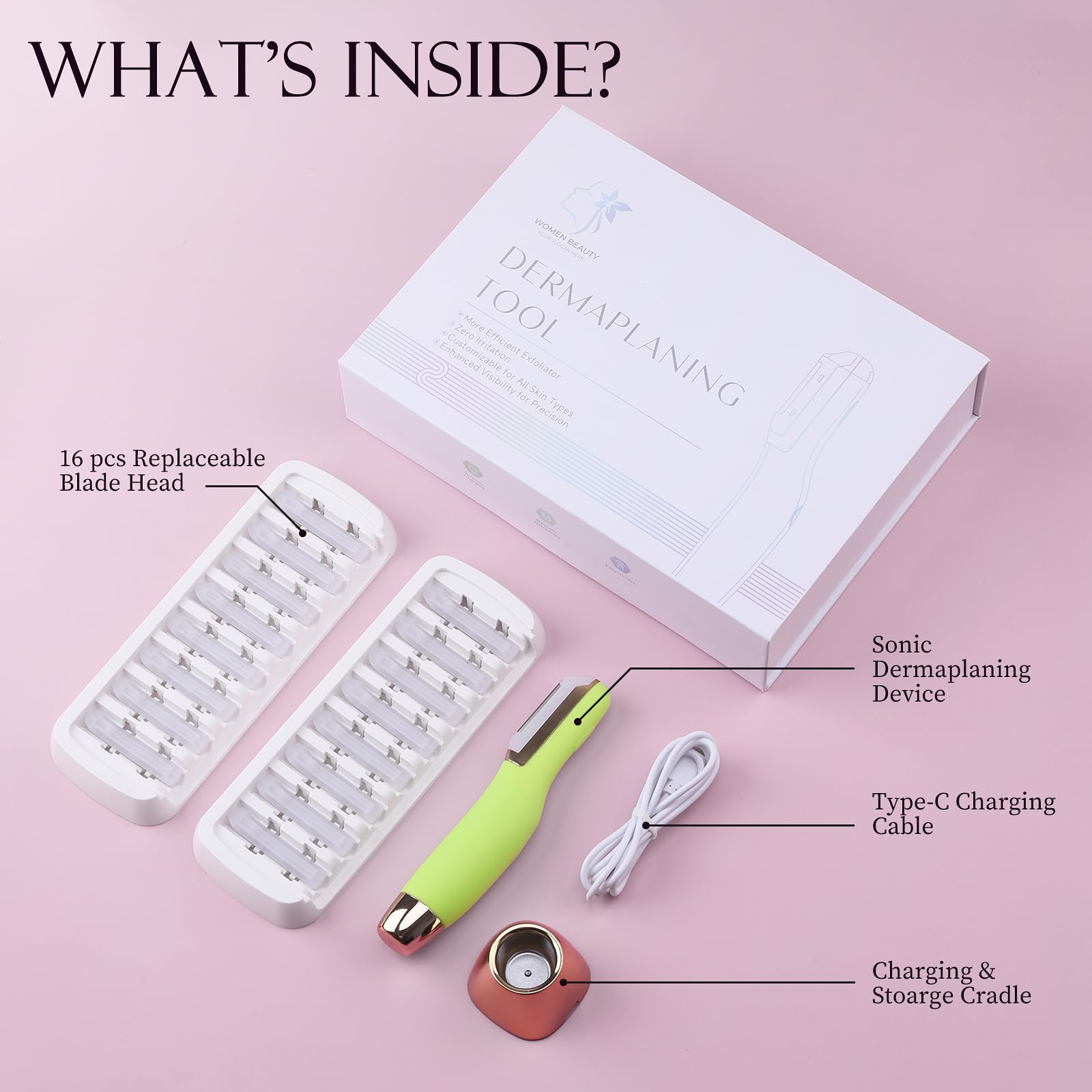 Dermaplane Razor for Women Face, Dermaplaning Tool for Exfoliating and Peach Fuzz, Facial Hair Removal with Sonic Edge Technology Beauty Tool with Wireless Charging & 16 Replaceable Blades(Green) - D-Max Deals