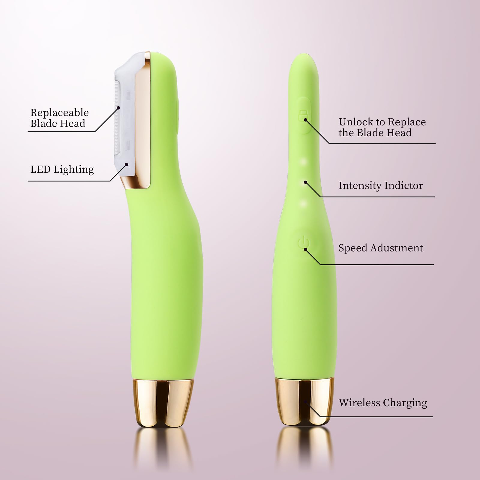 Dermaplane Razor for Women Face, Dermaplaning Tool for Exfoliating and Peach Fuzz, Facial Hair Removal with Sonic Edge Technology Beauty Tool with Wireless Charging & 16 Replaceable Blades(Green)