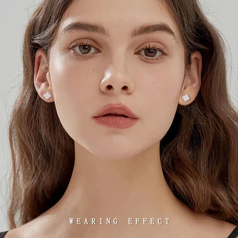Moissanite Four-Leaf Clover Stud Earrings S925 Sterling Silver Women Gift
