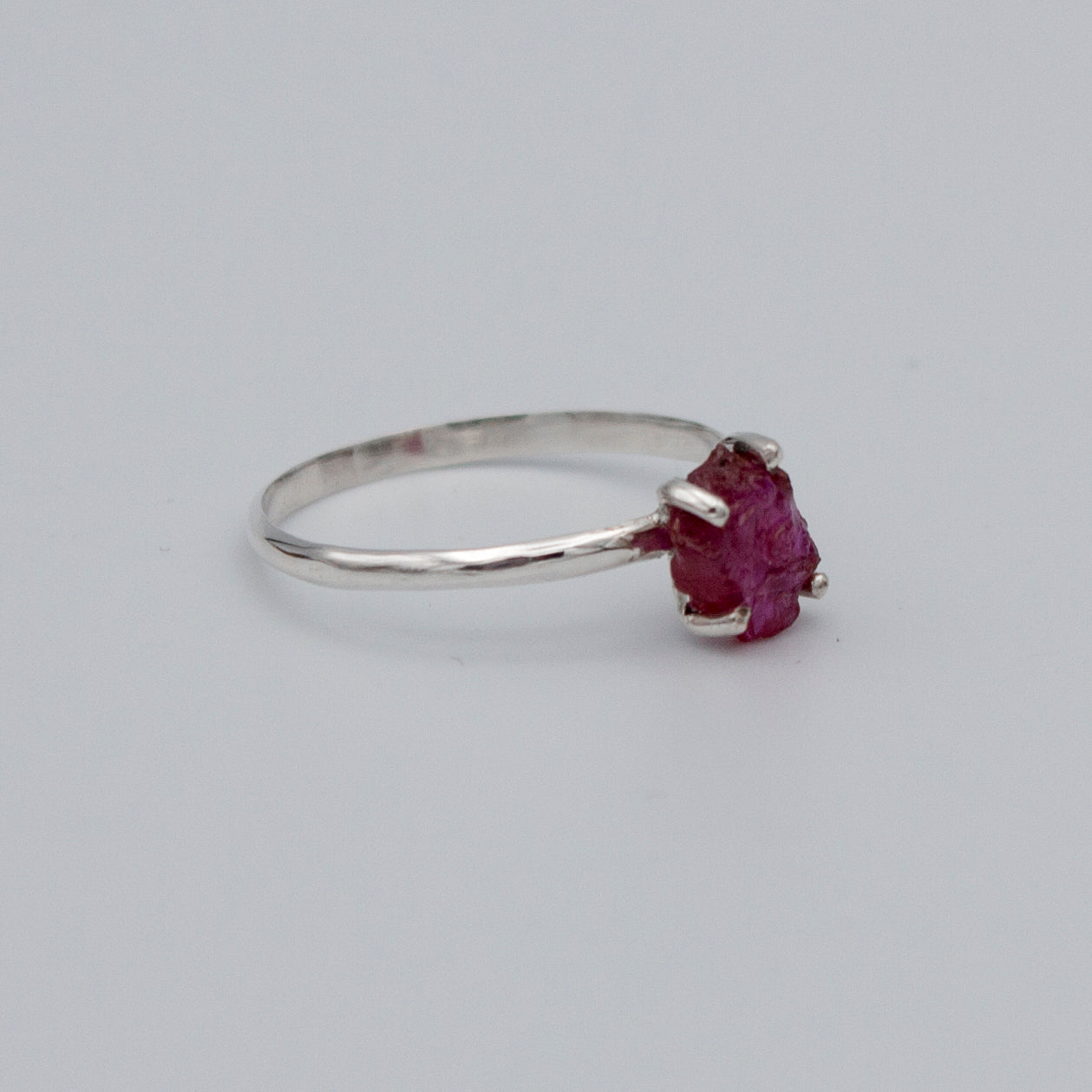 Sterling Silver Ruby Ring Raw Stone Minimalist Band