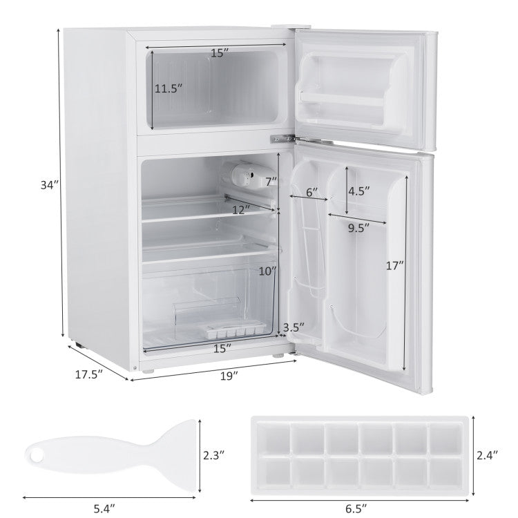 Customizable Temperature Control: Features 7 adjustable temperature settings, ranging from 32Β°F to 50Β°F for the refrigerator and below 50Β°F for the freezer. The built-in LED light provides clear visibility to the contents inside.