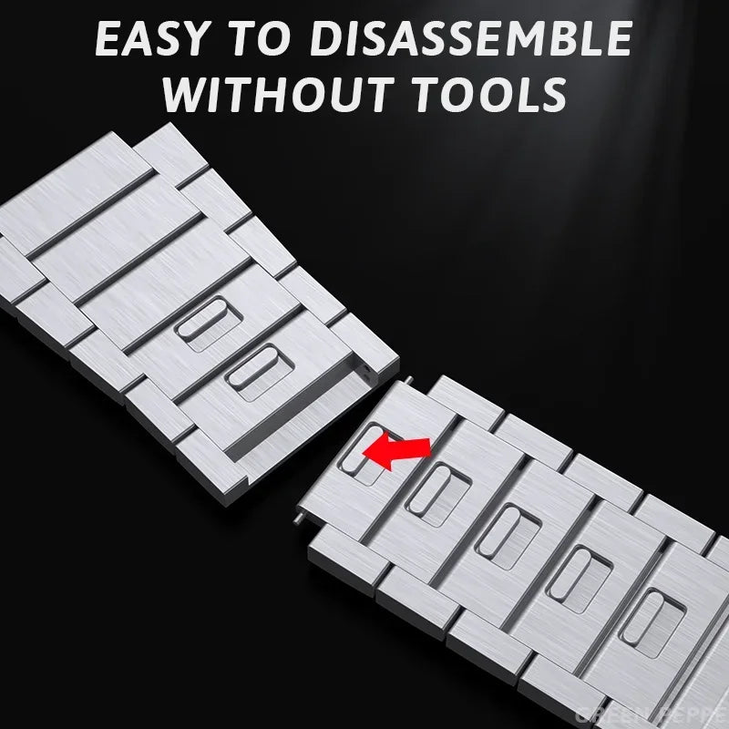 Introducing the Apple Watch Stainless Steel Band with a Magnetic Buckle Strap, designed for those who appreciate both style and function. This replacement band offers a sleek look while providing the comfort and durability you need for daily wear.