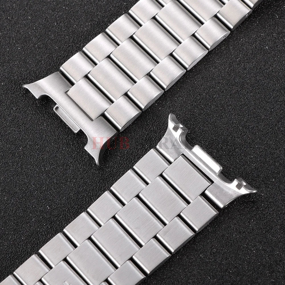 Solid stainless steel band that turns your smartwatch into a sleek everyday accessory — comfortable, durable, and ready for both work and weekends. A polished replacement strap that gives a refined look without sacrificing comfort.
