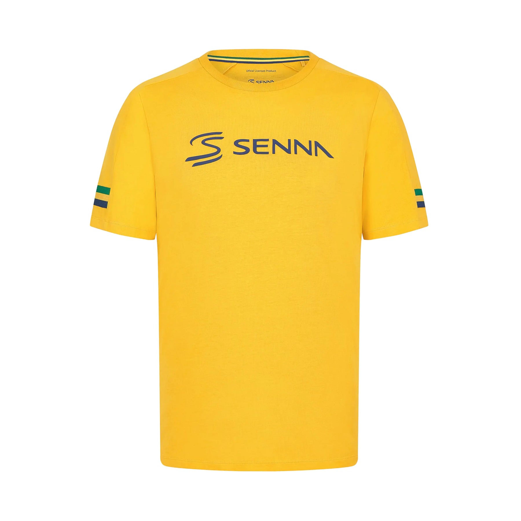 [100% Organic Cotton jersey Layered HD Senna logo print on chest Seek your truth print on rear Helmet inspired woven tape detailing on upper sleeve insert Senna flag label on side seam]
